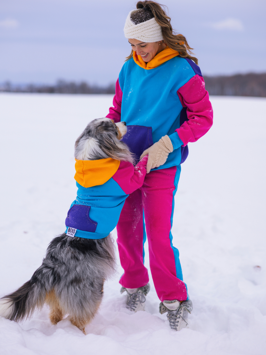 Australian-made matching owner and dog hoodies for every occasion. Matching colorblock dog hoodies make the pawfect gift for dog lovers!